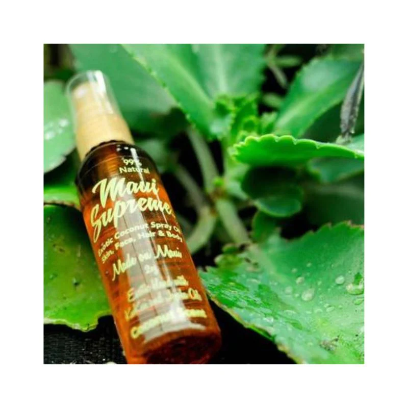 An exotic coconut oil perfect for your face, hair or body! This natural spray originated in Maui, Hawaii and uses a precise blend of 100% cold-pressed coconut oil with jojoba and kukui oils.