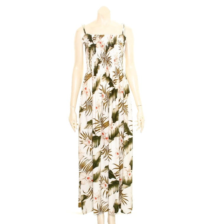 This elegant long dress features a comfortable elastic smocked top and adjustable spaghetti straps for a customizable fit that flatters every figure. Crafted from 100% Rayon for a lightweight and breezy feel, it's the perfect blend of comfort and style. Proudly made in Hawaii,