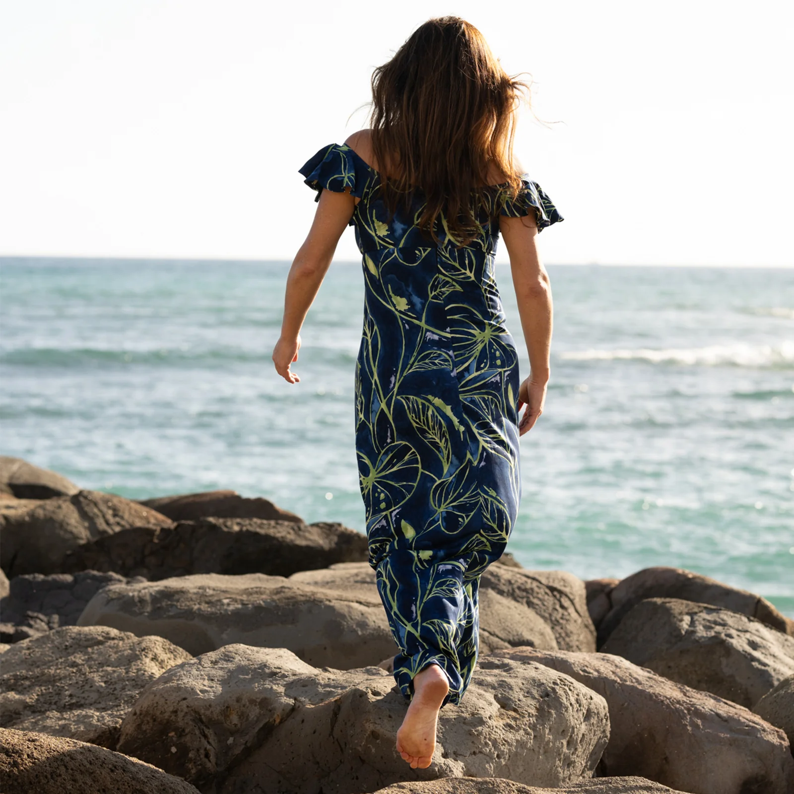 The Taro Leaf Empire Dress, featuring delicate flutter sleeves, stands as a cherished classic exclusively from Hilo Hattie. Each piece is crafted with the warmth of Aloha, embodying the stunning beauty and spirit of our magnificent islands. Made from 100% rayon, this dress is a testament to traditional elegance and island charm.