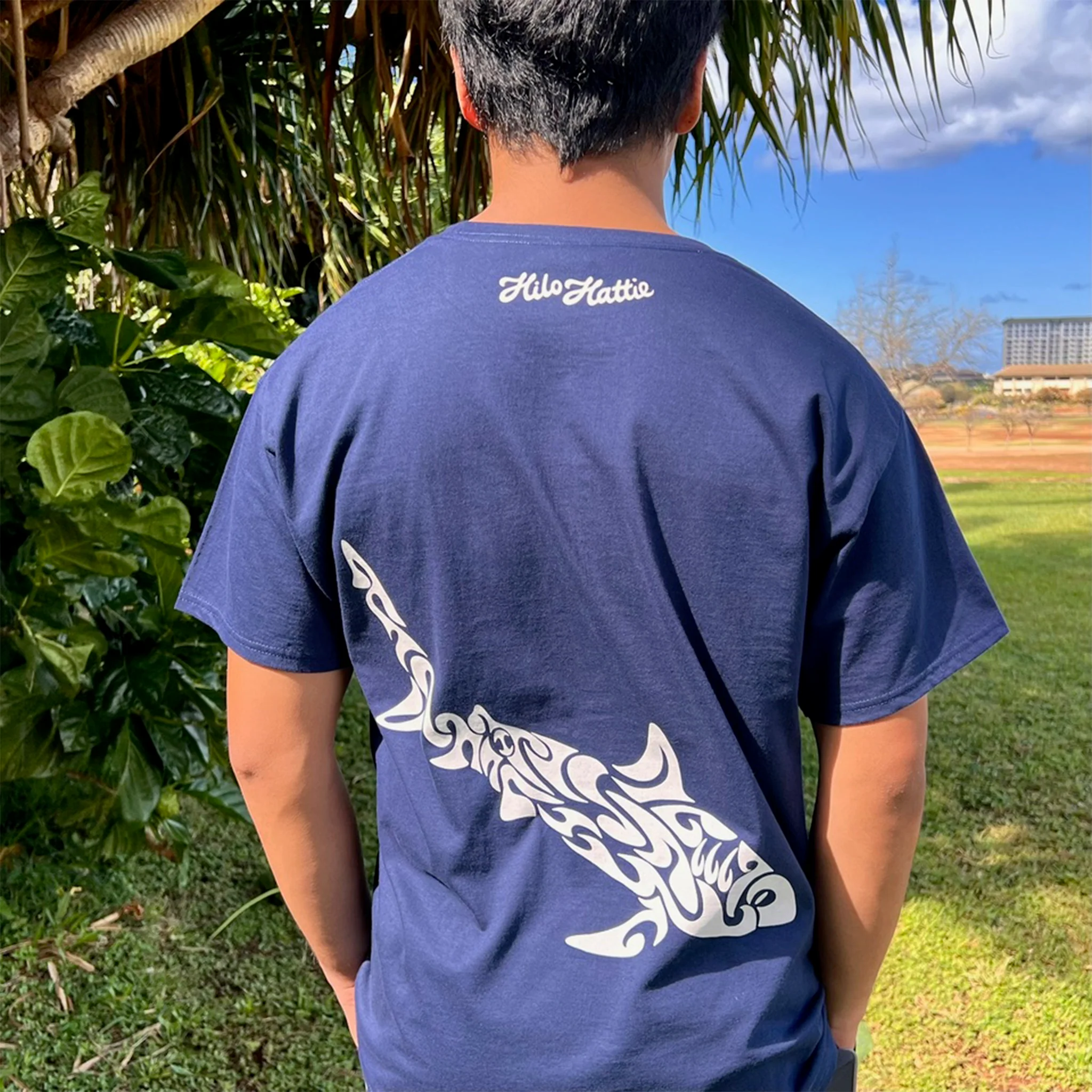 Made from 100% cotton and printed in Hawaii, this tee features three sharks in a tribal-inspired design, blending traditional patterns with a modern island feel. Soft, breathable, and easy to wear, itβs a great go-to for everyday comfort.Β