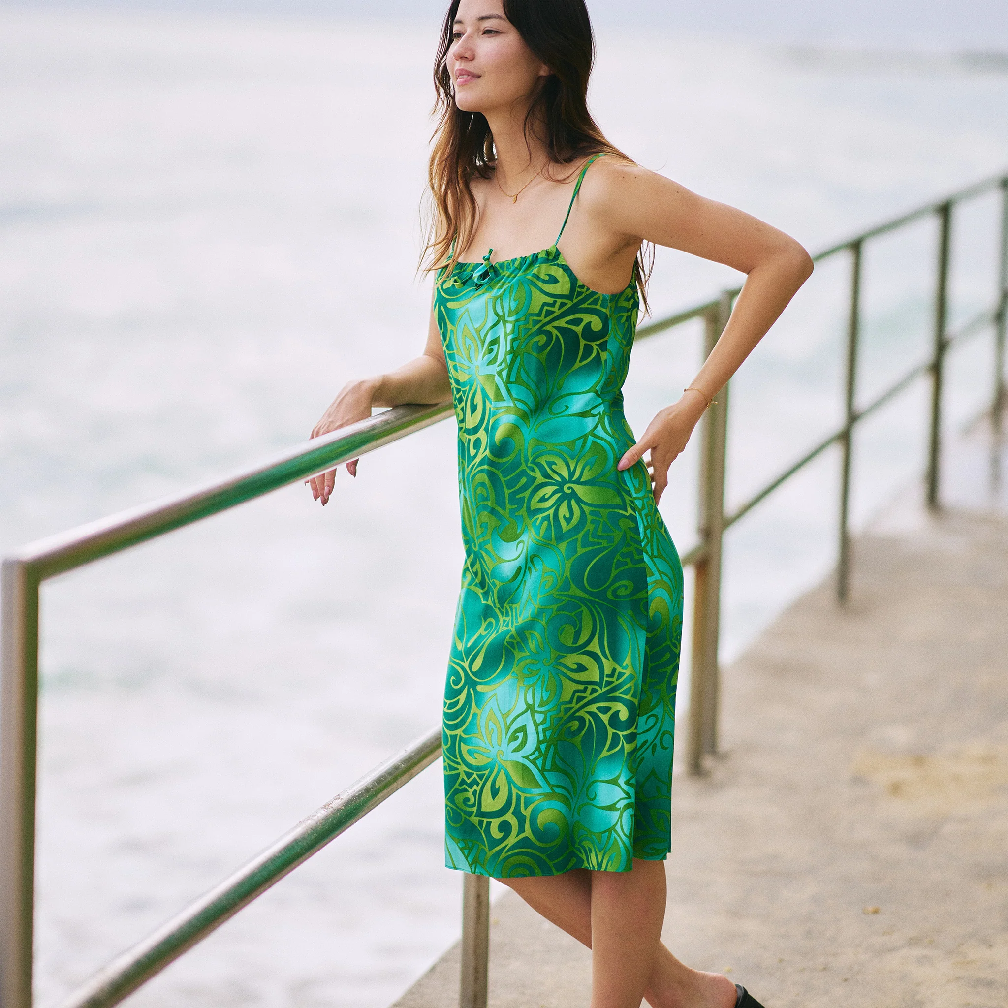 The Tribal Tiare Dress with Front Tie Strap is a stunning piece, proudly made in Hawaii and designed to offer versatile styling options for any occasion. Crafted from 100% rayon, this dress delivers a cool and comfortable wear, perfect for tropical days and nights. With its unique tribal Tiare print and adjustable front tie strap, it combines island-inspired elegance with effortless style.