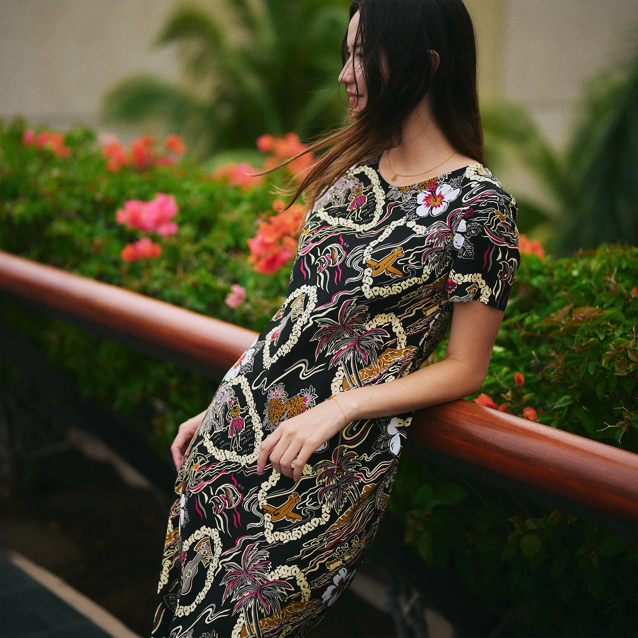 Our Vintage Scenic Short Dress brings timeless Hawaiian charm to your wardrobe with its delightful “vintage aloha” scene print on soft, breathable rayon. Crafted in Hawaii and made with Aloha, this dress captures the beauty and spirit of the islands in every detail. Perfect for any warm day, it’s an effortlessly stylish way to carry the essence of paradise with you.
